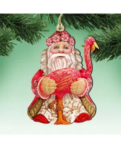 Flamingo Santa Wooden Christmas Ornament Set Of 2 In Multi