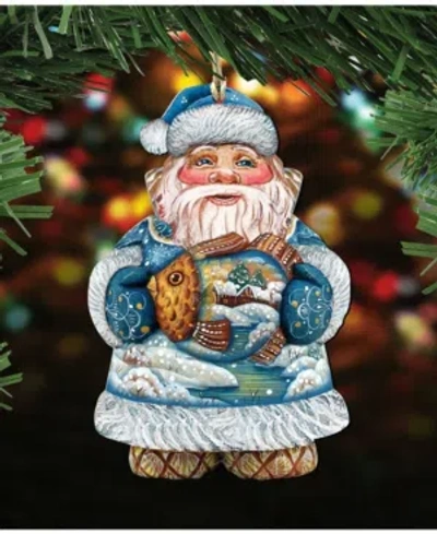 Gold Fish Santa Wooden Christmas Ornament Set Of 2 In Multi