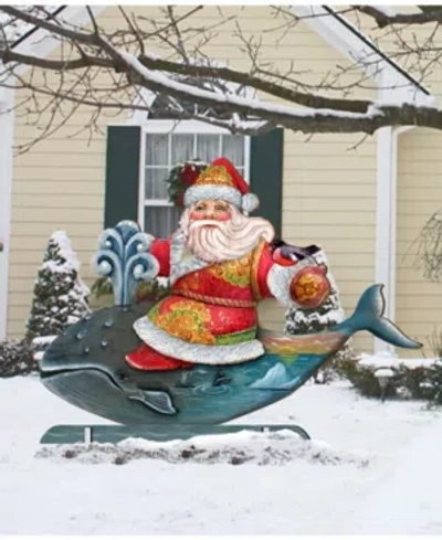Whale Coastal Santa Christmas Door Hanger In Multi