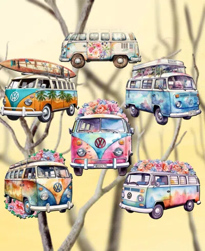 Holiday Wooden Clip-on Ornaments Volkswagen Vans Set Of 6 G. Debrekht In Multi Color