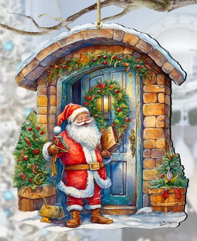 Merry Delivery Santa With Gifts Christmas Wooden Ornaments G. Debrekht In Multi Color