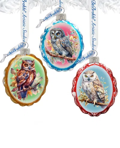 Wise Owls Keepsake Mercury Christmas Glass Ornaments Set Of 3 G. Debrekht In Multi Color