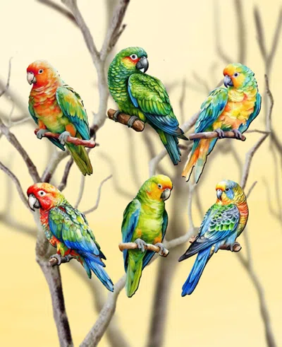Holiday Wooden Clip-on Ornaments Parrots Set Of 6 G. Debrekht In Multi Color