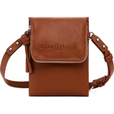 Faux Leather Phone Crossbody Bag In Brown
