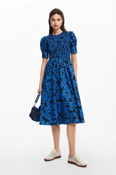 Floral Midi Dress In Blue