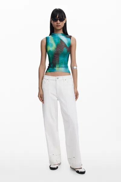 Tyler Mcgillivary Wide Leg Floral Jeans In Blue