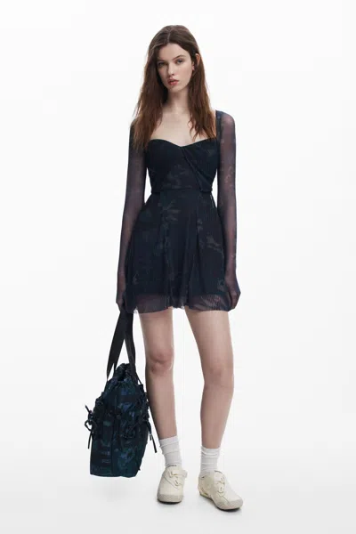 Short Dress With Crossed Straps In Blue