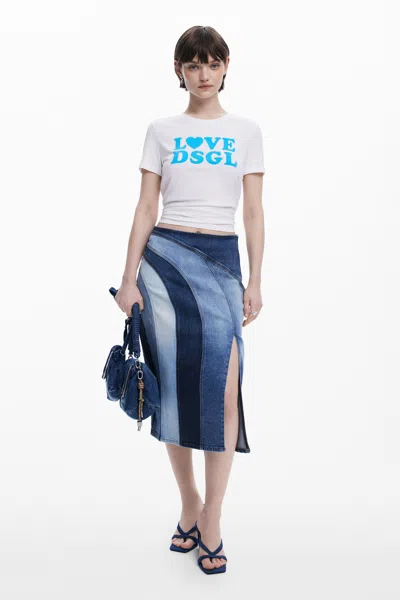 Denim Midi Skirt With Panels In Blue
