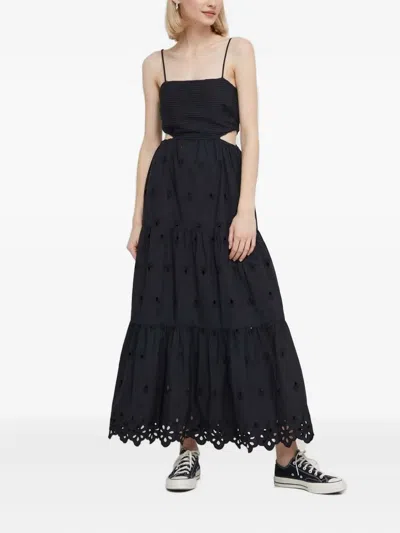 Eyelet-embroidered Tiered Maxi Dress In Black