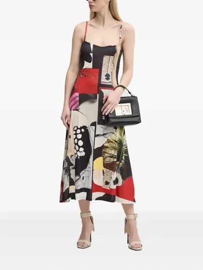 Patchwork-print Slip Midi Dress In Black