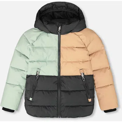 Kids' Boy Colorblocked Puffy Winter Coat In Black