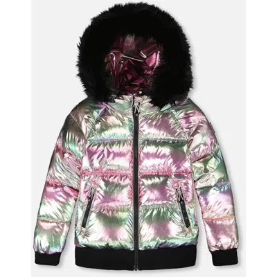 Kids' Multicolor Metallic Quilted Bomber-style Winter Coat In Silver