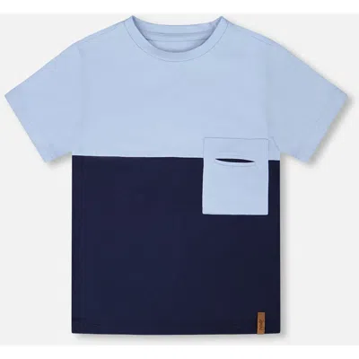 Kids' Organic Cotton Colorblock Jersey Short Sleeve T-shirt With Chest Pocket In Blue