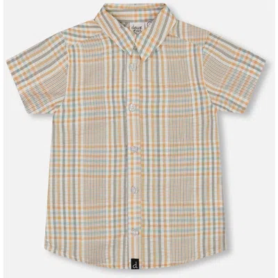 Kids' Boy's Short Sleeve Button Down Shirt Beige And Sage Plaid