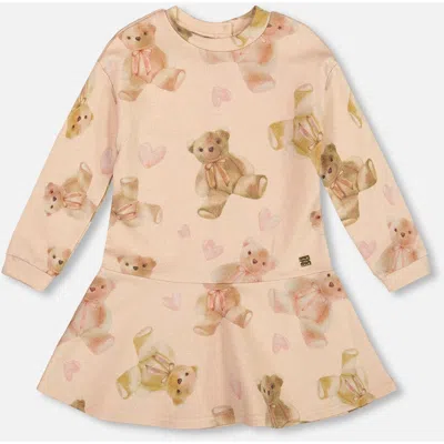 Kids' Glittering French Terry Dress Teddy Bear In Neutral