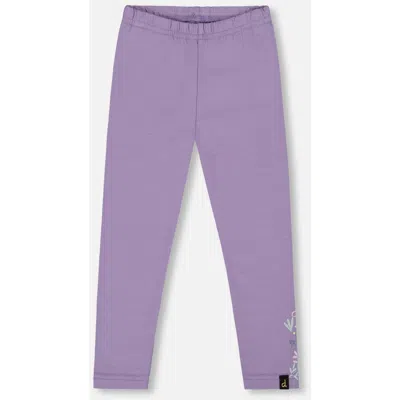 Kids' Organic Cotton Jersey Leggings With Floral Detail In Purple