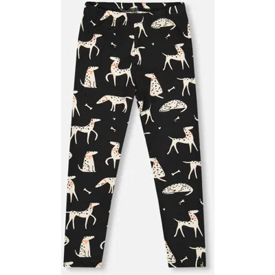 Kids' Jersey Leggings With Dalmatians In Black