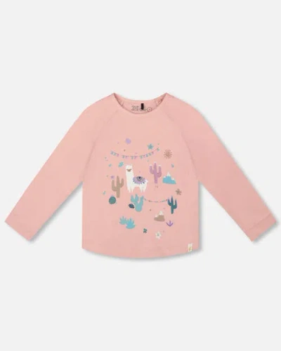 Kids' Organic Cotton T-shirt With Llama In Pink