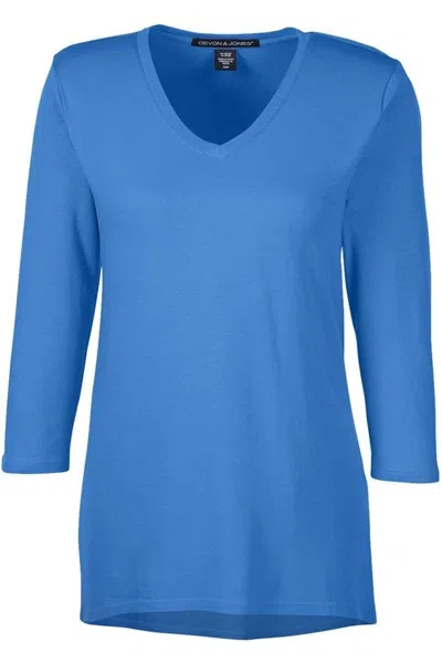 Women's Perfect Fit Bracelet-length V-neck Top In Blue