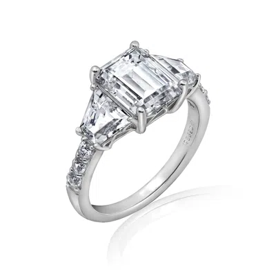 Women's White Emerald Cut With Trapeze Side Stone Engagement Ring