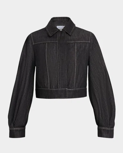 Blouson-sleeve Crop Denim Jacket In Black