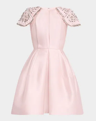Embroidered-shoulder Fit-&-flare Dress In Pink