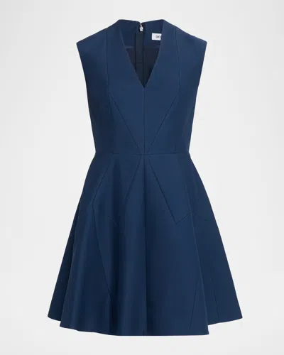 Sleeveless Geometric Seamed Mini Dress In Blue