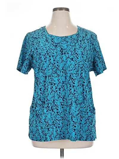 Pre-owned Short Sleeve Top Teal Scoop Neck Tops In Blue