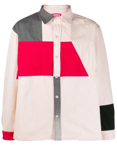 Colour Block Button-up Shirt In Neutrals