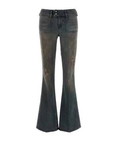 Flared Stretch Denim Jeans With Distressed Pockets In Grey