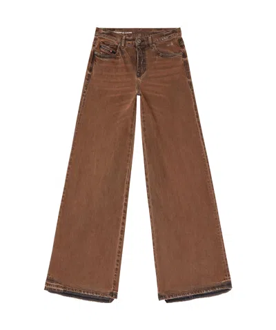 Rust-effect Brown Wide-leg Jeans In Beige