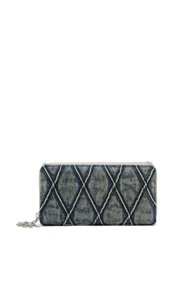Portafoglio Zip In Denim A Rombi In Blu