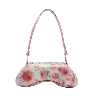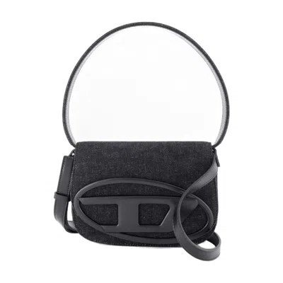 '1dr' Black Shoulder Bag With Oval D Plaque With Rhinestones And Fringed Edges In Cotton And Leather
