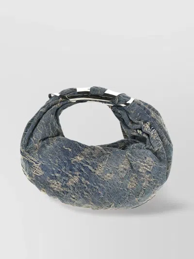 'handle Top Distressed Denim Texture Silver-tone Hardware'