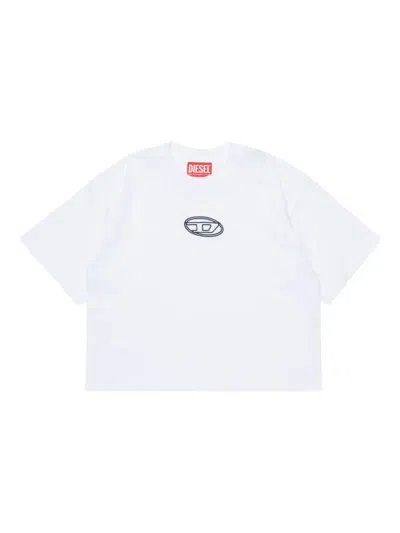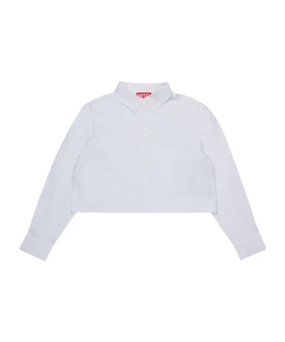 Kids' Camicia Boxy In Popeline Con Logo Sul Colletto In White