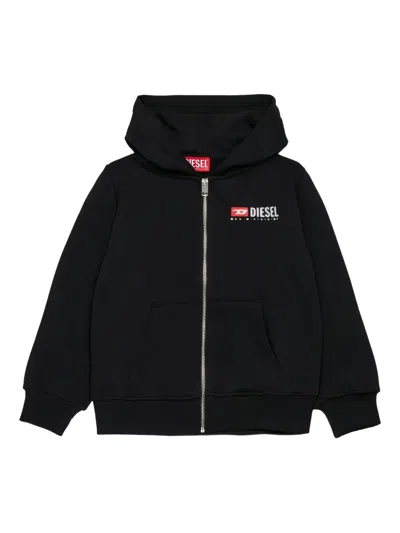 Kids Oval-d Logo Printed Zipped Hoodie In Black