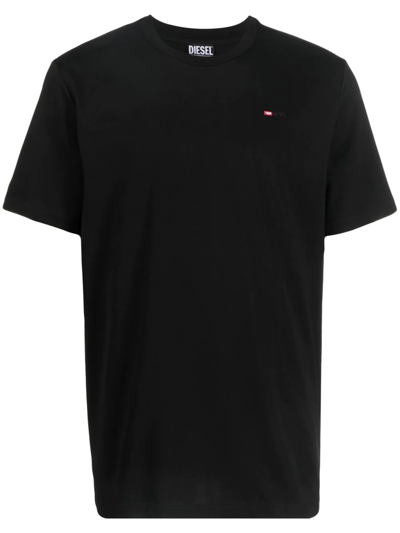 Solid Color T-just Crew-neck T-shirt With Micro Embroidery In Black