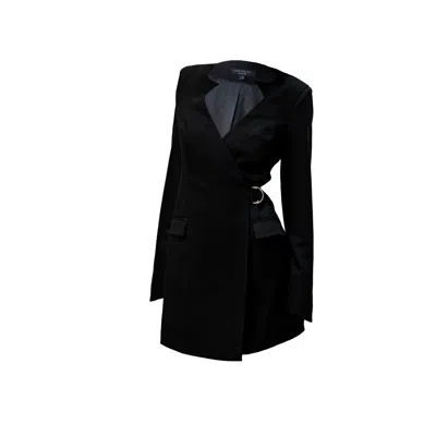 Women's Cut-out Collar Blazer With Waist Closure & Pointed Sleeves Black