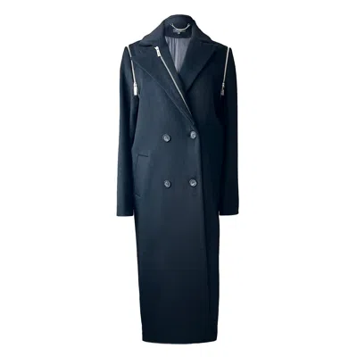 Women's Straight Transformer Wool Coat With Zipper Detachable Sleeves Black