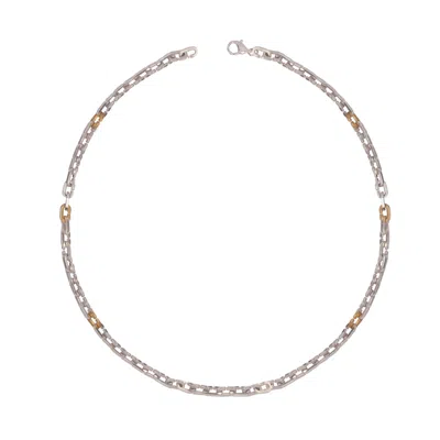 Men's Silver Route 66 Gold Dteailed Chain Necklace