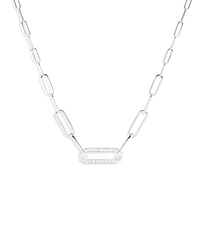 18k White Gold Maillon Diamond Pave Link Pendant Necklace, 16.93