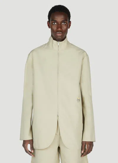 Mens Raw Linen Patch-pocket Brand-embroidered Regular-fit Cotton Jacket