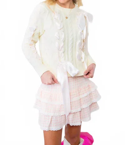 Khloe Chunky Cable Knit Ribbon Detail Sweater In White In Neutral