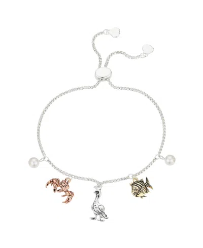 Unwritten Water Imitation White Pearl And Multi Charm Bracelet In Tri Tone