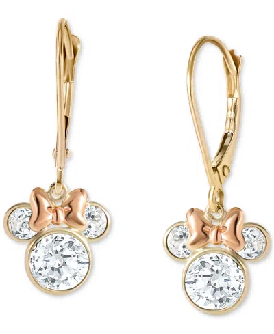 Minnie Mouse Cubic Zirconia Drop Earrings In 10k Yellow & Rose Gold