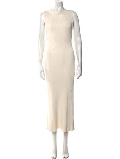 Pre-owned Bateau Neckline Long Dress In Neutral