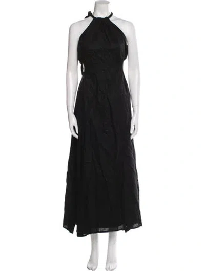 Pre-owned Linen Long Dress In Black