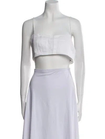 Pre-owned Linen Square Neckline Crop Top W/ Tags In White