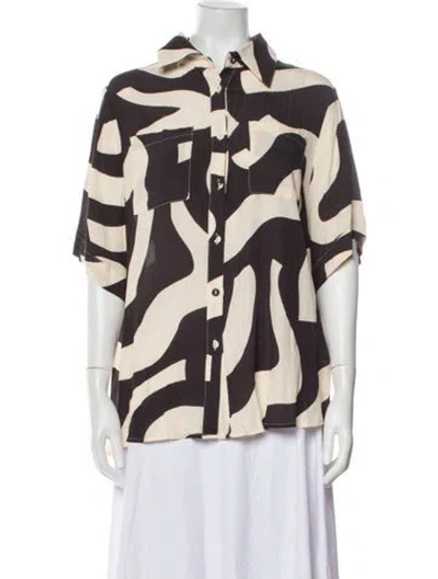 Pre-owned Printed Three-quarter Sleeve Button-up Top In Neutral