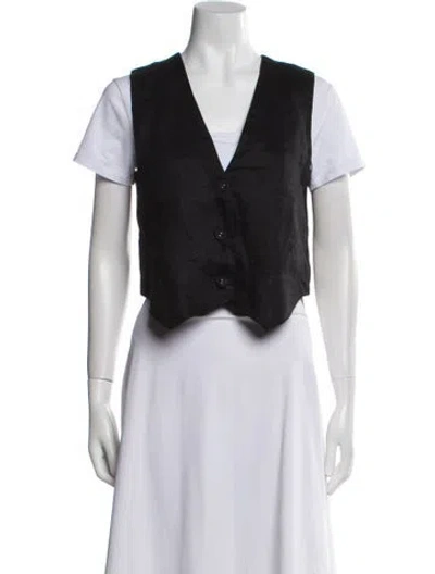 Pre-owned Linen V-neck Crop Top In Black